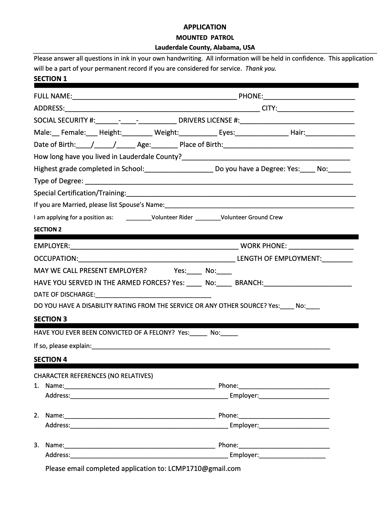 Have you ever heard the calling to help a neighbor in need? Have you ever wanted to work with a close team to better your community? Now’s the time! Now and again we are in search of applicants to help make our Mission a reality. Print the application, complete it, and send it to: LCMP1710@gmail.com or bring it to the Sheriff’s office. You won’t regret it.